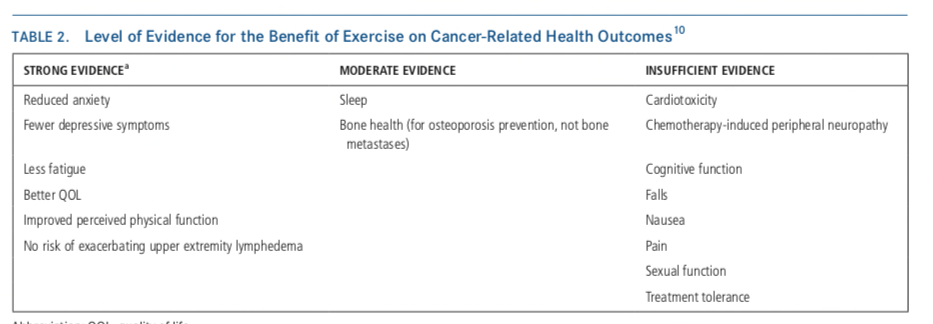 Table 1. Benefits of Exercise for Cancer-Related Health Outcomes (Schmitz et al., 2019)